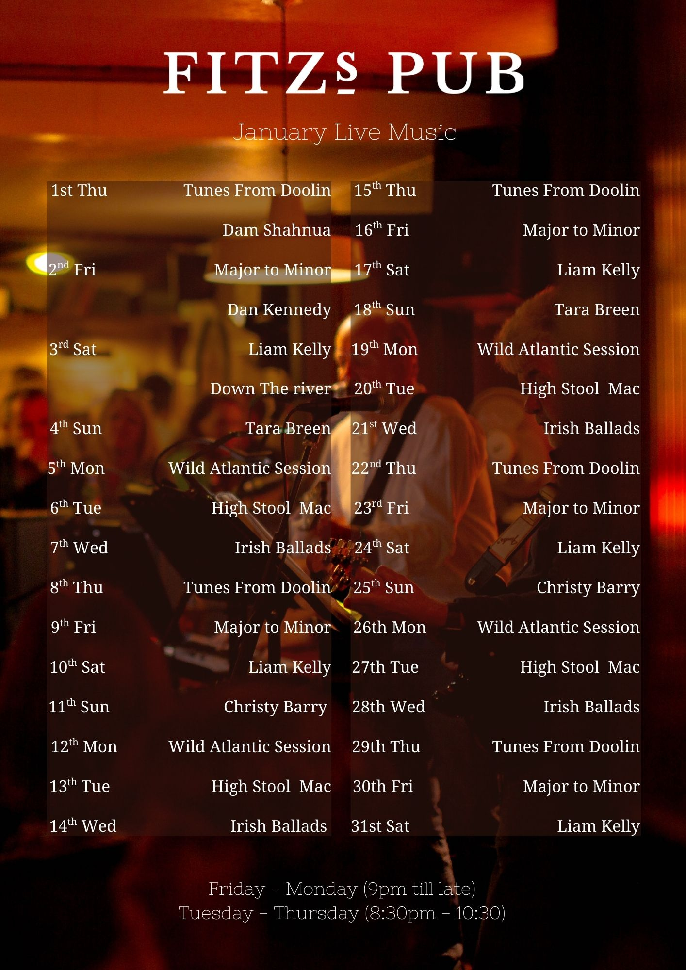 We have nightly live music in Fitz's Pub, check out our upcoming music schedule below.